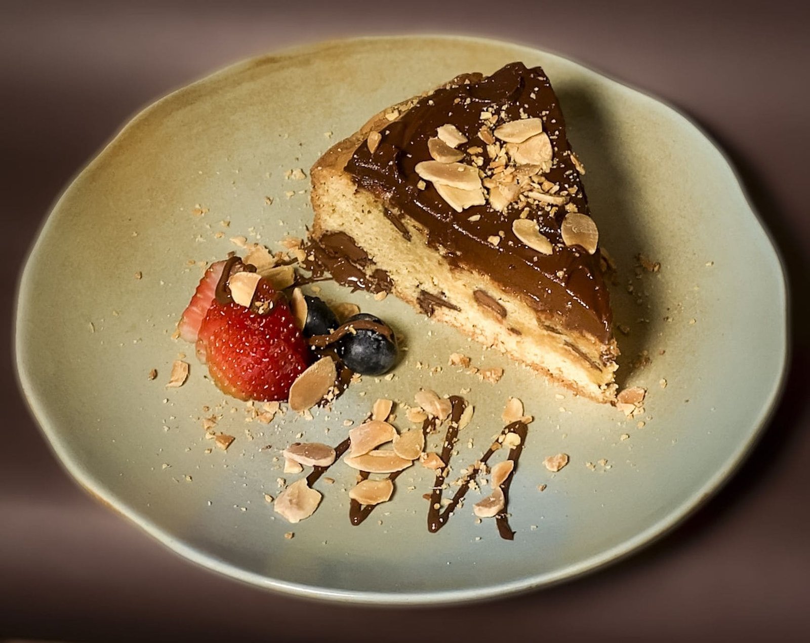 El postre de Chocolate está brutal, con fresas y arándanos que le dan el toque fresco.